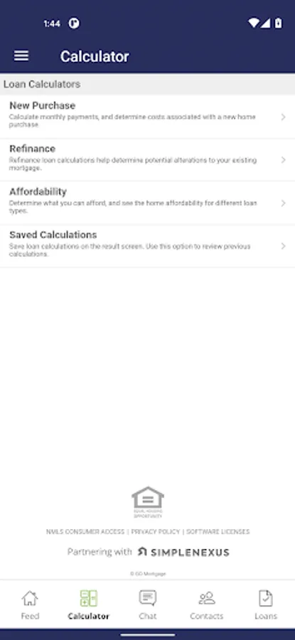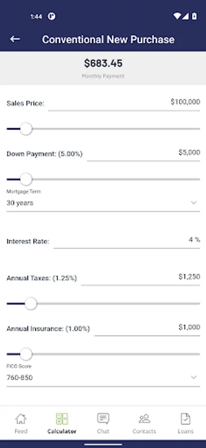 - Purchase and Refinance calculators that help you determine an estimate of your monthly costs and down payment amount for a variety of loan programs.