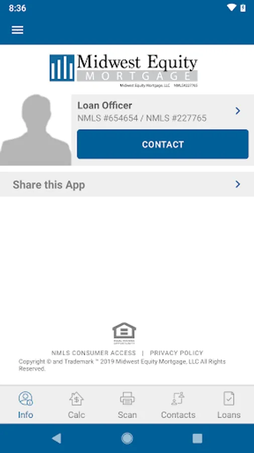 • Easily access contact information for your Midwest Equity Loan Officer and real estate agent and share this information with your family and friends.