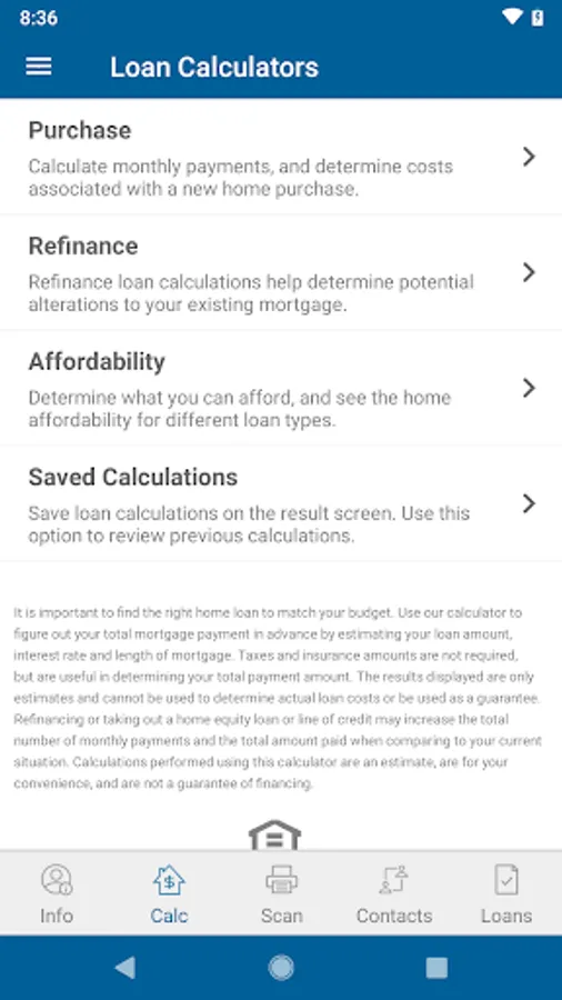 The calculations provided by the MyHome: Mobile App are useful in giving you an idea of what homeownership might mean for you. However, please be sure to contact your Midwest Equity Mortgage Loan Officer for a customized solution tailored to your specific financial situation, needs, and goals. Your Loan Officer can also assist you with any questions you have about your loan and the loan approval process.