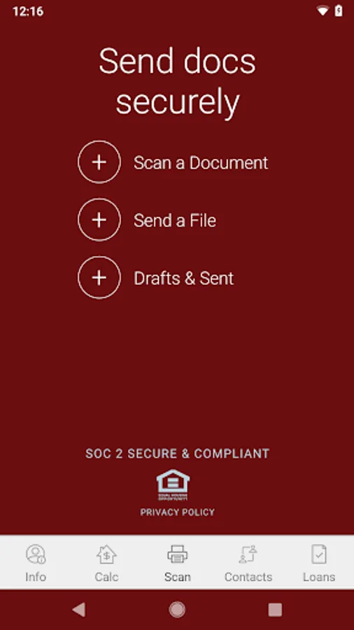 Use the camera on your phone to send important documents to your Loan Officer. No fax machine, scanner, or stamp required!