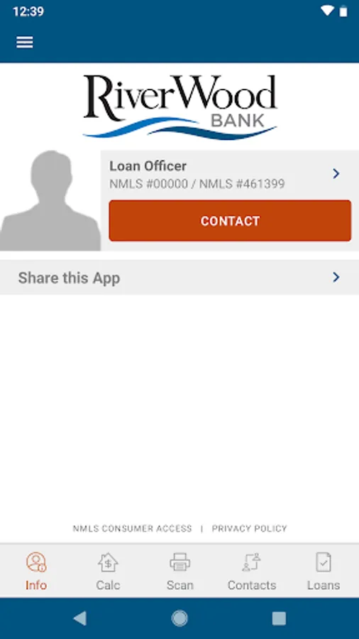 • Easily access contact information for your RiverWood Bank Loan Officer and real estate agent and share this information with your family and friends.