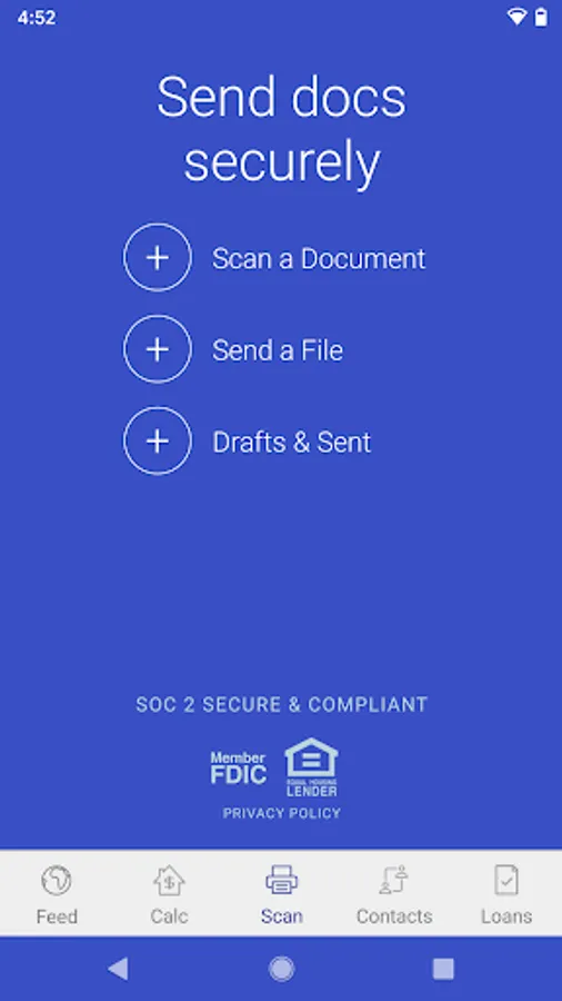 • Ability to scan in required documents on your phone and upload them quickly to expedite the loan process