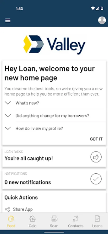 • Easily access contact information for your Valley Loan Officer and real estate agent and share this information with your family and friends.