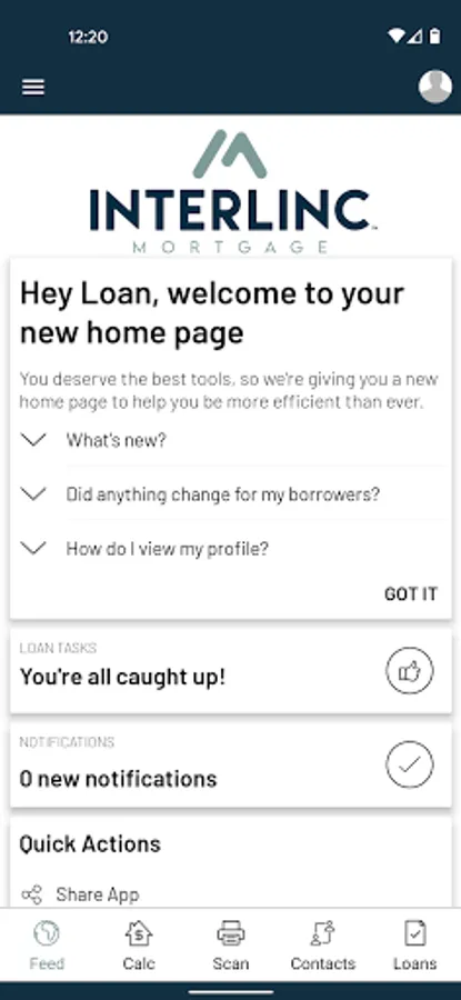 - Access contact information for your InterLinc Loan Originator and real estate agent.