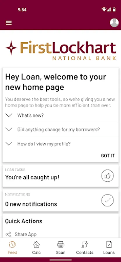 • Access your First Lockhart National Bank Loan Officer's contact info with just one click.