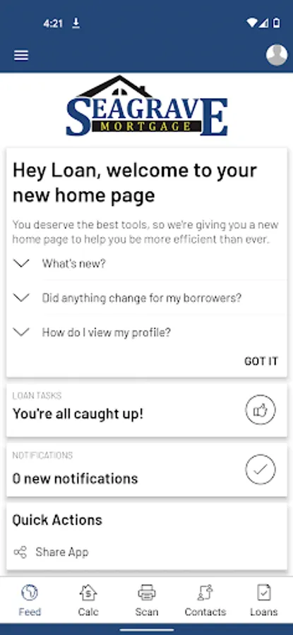 The SeaGrave Mortgage Home Loans app will give the customer a bird's eye view of the home loan process from start to finish.