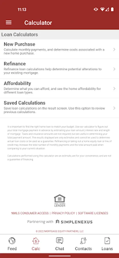 Mortgage Equity Partners and its affiliates, including CMG and other subsidiaries, work with our customers to provide the best possible home financing experience through exceptional customer service, education, and technology. To that end, we have developed The MEP Mortgage Experience mobile app as a tool to make the lending experience transparent, efficient, and fast. We have created our app to assist homebuyers in purchasing a home, homeowners who want to refinance their current home, and real estate agents who want to track the loan process.