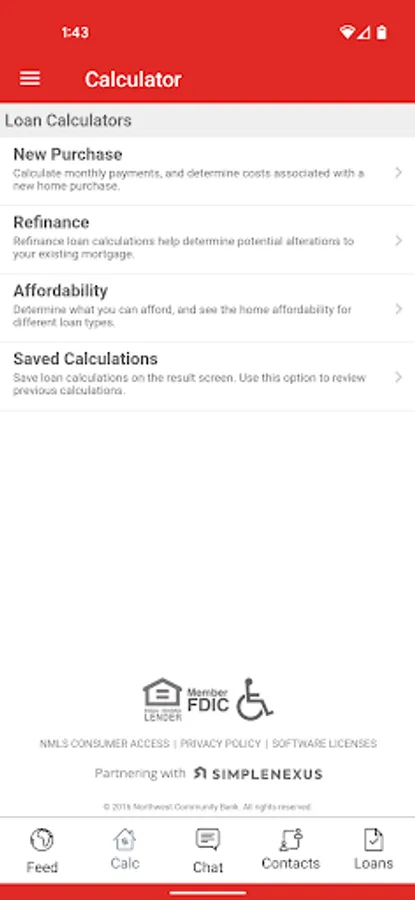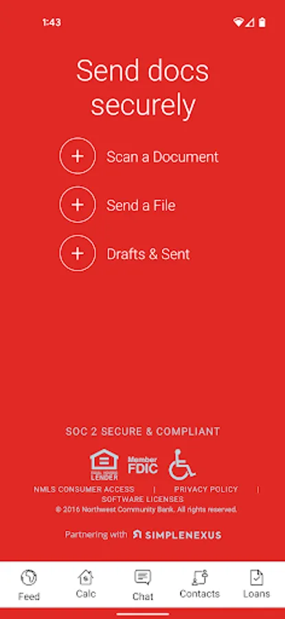 • Easily access contact information for your Northwest Community Bank Loan Officer and real estate agent and share this information with your family and friends.