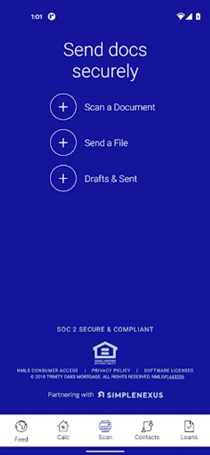 The Trinity Oaks Mortgage mobile app gives borrowers, real estate agents, sales agents, and loan officers the ability to submit a loan application, track the progress of the loan, receive real time updates as the loan moves through processing, and submit required documents via their mobile device. Users can verify loan information and status, receive push notification reminders for important dates (appraisal, closing date, rate lock, etc.) and remain engaged from origination to closing day. Other useful tools within the app include mortgage calculators, a glossary of mortgage terms and helpful videos to answer frequently asked questions that surface during the home financing process.