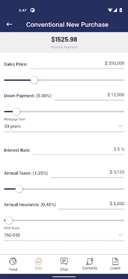 Calculate scenarios based on down payment amount, interest rate, and other variables