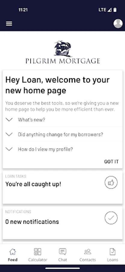 - Easily access contact information for your Pilgrim Loan Officer and real estate agent