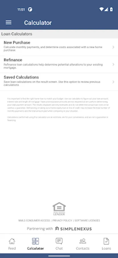 The calculations provided by the Simple Loan App are useful in giving you an idea of what homeownership might mean for you. However, please be sure to contact your Loan Officer for a customized solution tailored to your specific financial situation, needs, and goals. Your Loan Officer can also assist you with any questions you have about your loan and the loan approval process.
