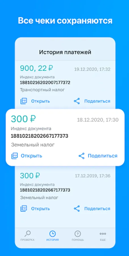 After completing the tax payment transaction, you will instantly receive a payment document. The entire history of transactions with receipts will be stored in the application of your mobile phone, which is very convenient.