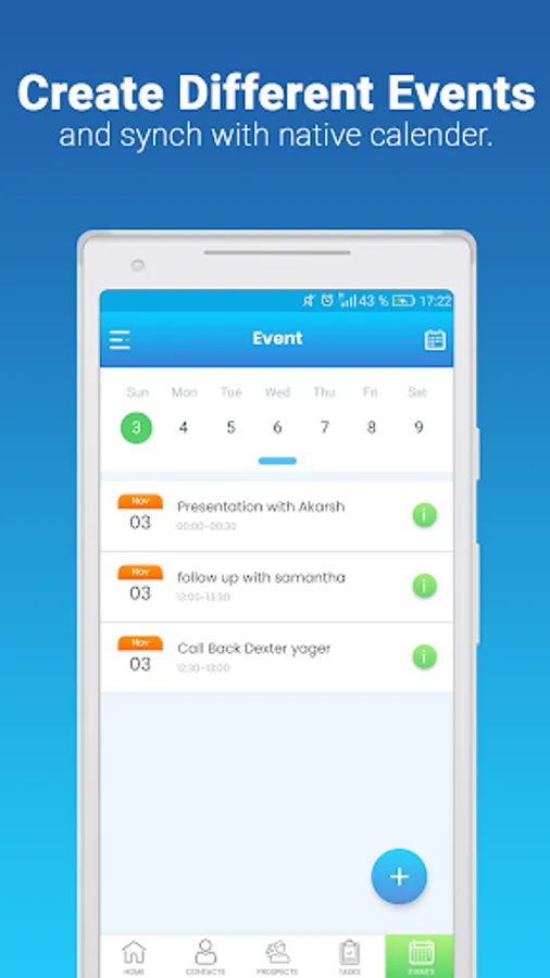 ✔️ Create followup events for your leads with just a couple of taps and send semi automated reminder text to your prospects!