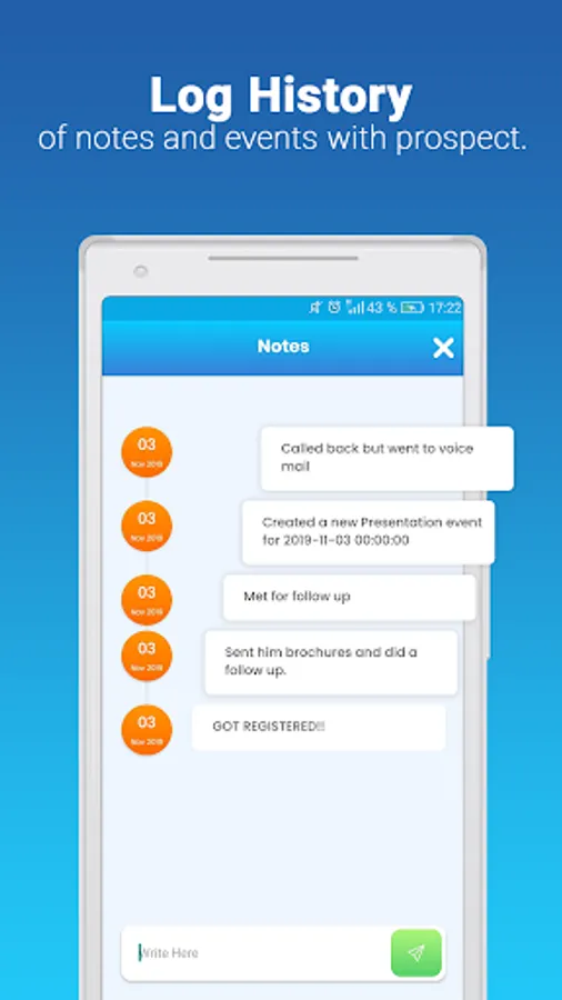 ✔️ Get a historical log or notes of a prospect with an easy tap and access it from multiple places in the app.