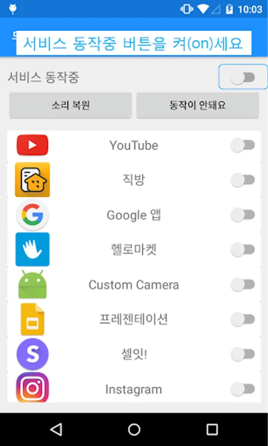 3. When you return to the authority of the silent camera app and to 'ON' silent camera service is running.