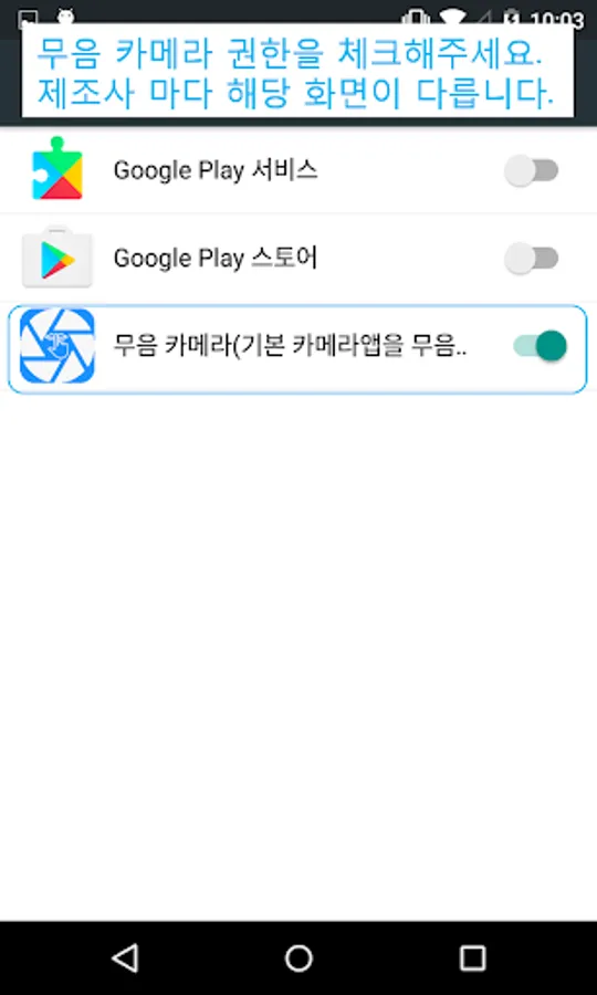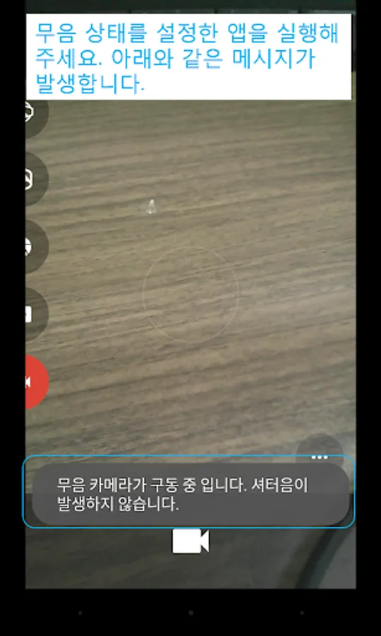 It not only eliminates camera shutter sound, and do not stray all the sounds of mobile phones, has been developed as shutters eumdo does not occur structure of the camera app.