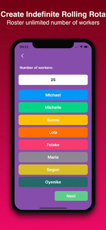 *Easily edit the rota to give workers more or less shifts or adjust must work and away dates.