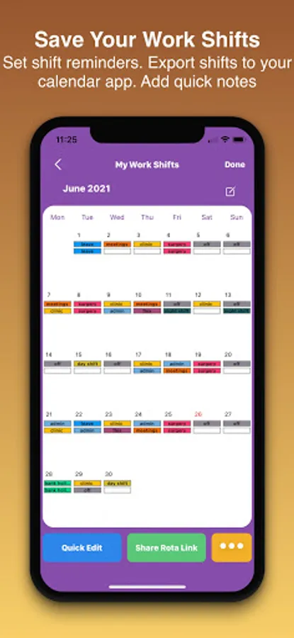 *Export rota to your phone calendar app. Each event is exported separately and if required will need to be deleted individually.