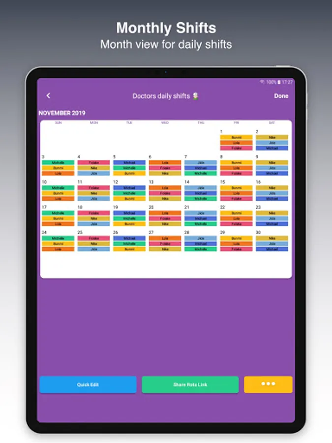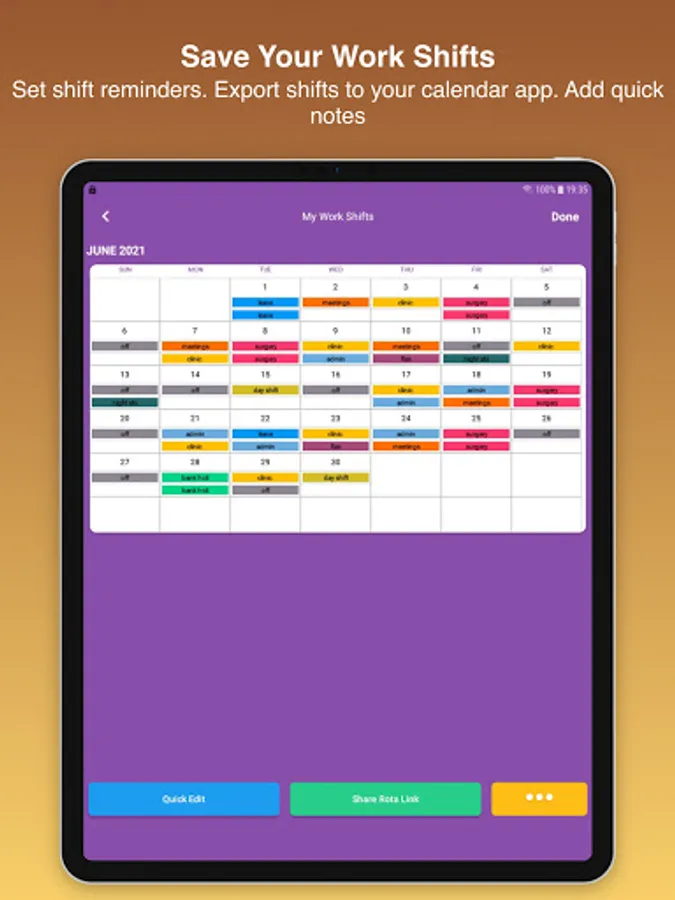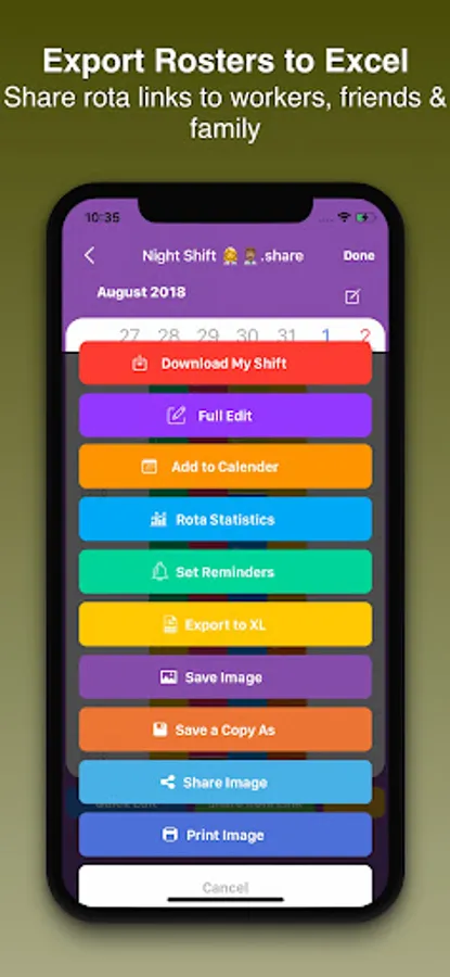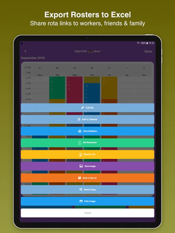 *Export rota to spreadsheet apps like Excel, Google sheets, or Apple Numbers.