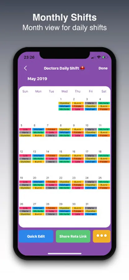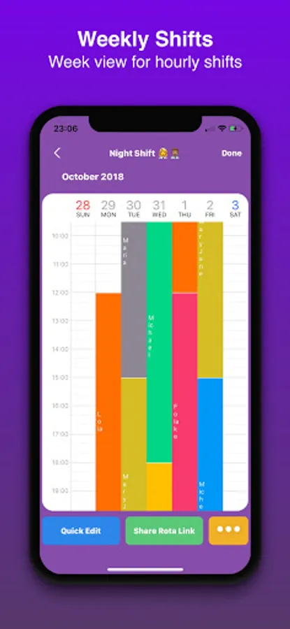 *Share links to your Rota. You can collaborate with coworkers in making your rota by sharing links. Each time a link is opened a duplicate dot.share version of your rota is created which can be edited & shared again back and forth.