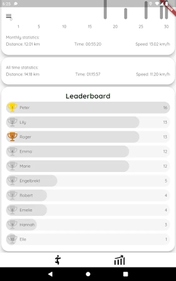 Keep track of your run streaks, keep track of your history and participate in a global leader board. You can get started without registering an account, but some features will be limited. You can at any point convert to a full account and be able sync your data across devices.