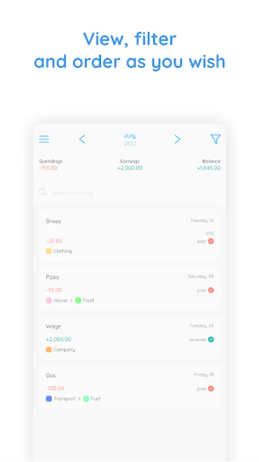 Track your spending and earnings quickly and clearly, whenever and wherever you want!