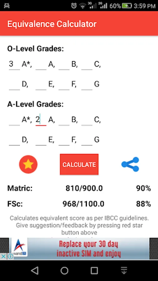 Easily find IBCC O/A levels equivalence score for Matric and F.Sc