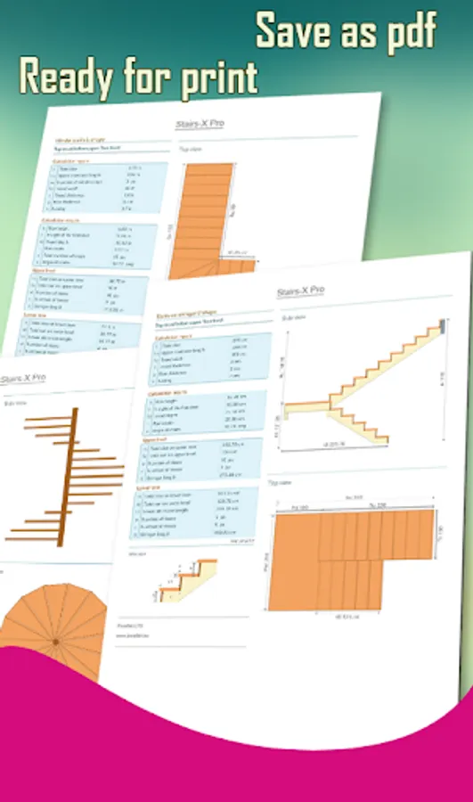 Stairs-X Pro is a powerful and user-friendly stairs calculator and stair design, useful for fast calculations and design for standard stairs and advanced stairs. After calculation you can see the staircase in 2D drawing exactly how you like it, and you have the possibility to send your calculation alongside with all drawings thru email for future printings.