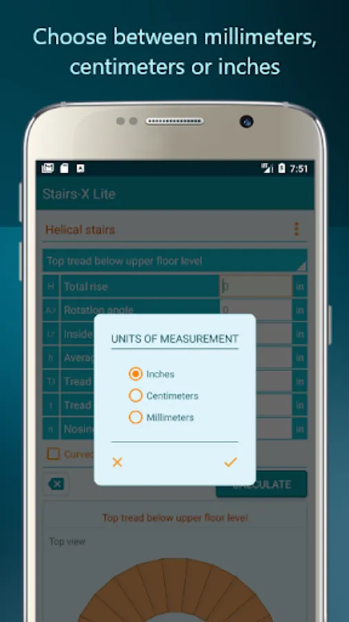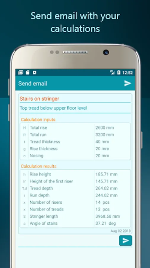 Calculate treads depth, rise height, number of steps and angle fast and easy.