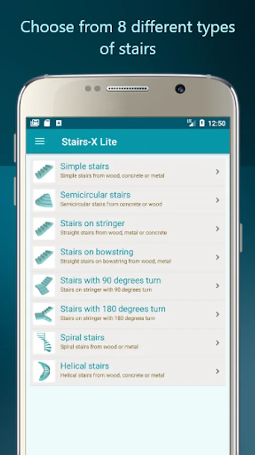 Calculate concrete stairs, simple wood stairs, spiral staircase and stairs on bowstring, each one with the best techniques of calculations.
