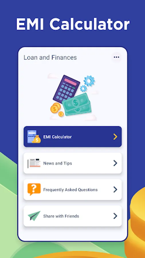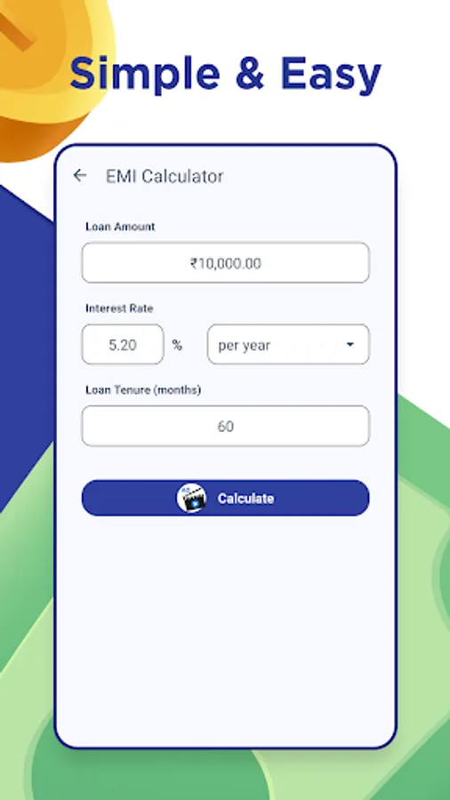 Loan EMI Calculator is the ultimate financial companion you need to manage your Home Loan, Car Loan, and Personal Loan EMI payments. Our app's intuitive interface makes it easy for you to calculate your monthly EMI payments, loan repayment schedules, and loan interest rates in a few simple clicks.