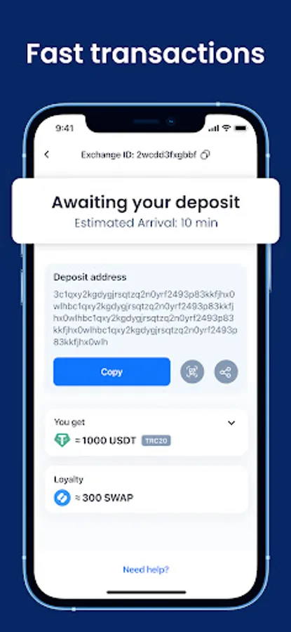 We offer our customers a Loyalty Program empowered by our utility token, SimpleSwap Coin (SWAP). Holding at least 2000 SWAP allows you to receive BTC cashback for every single exchange on our platform