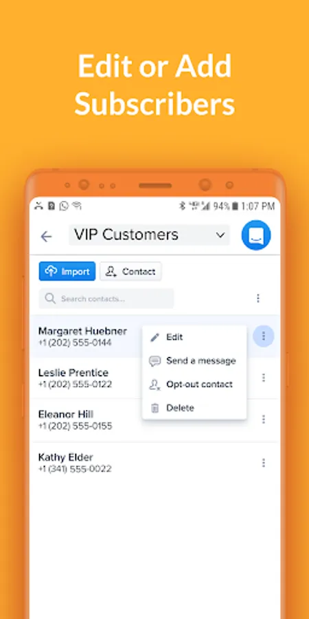 • Manage your list of subscribers and add contacts