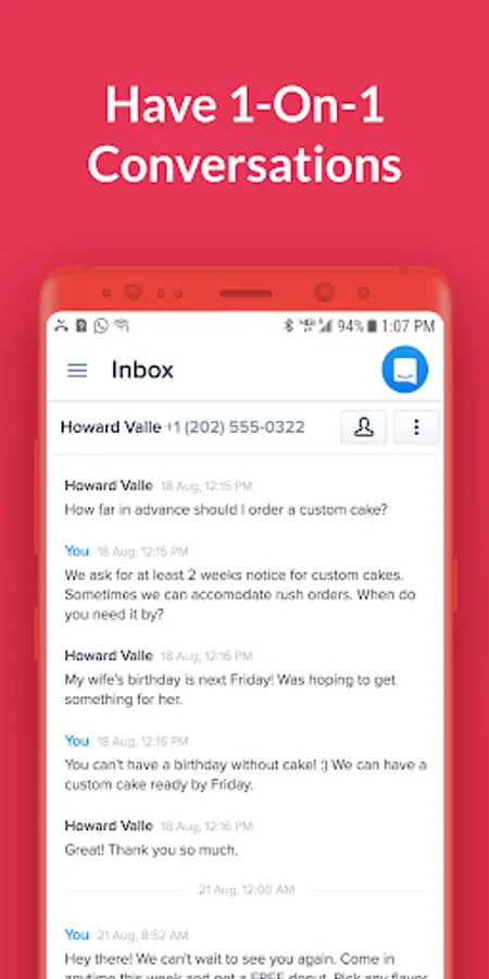 • Get notified as soon as you receive a text from a subscriber