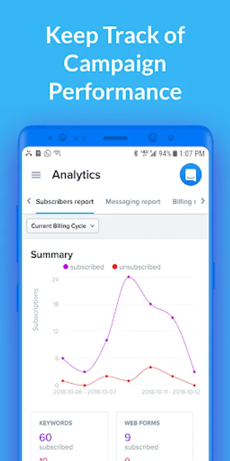 • Visualize click-through rates, subscriber growth and number of messages sent