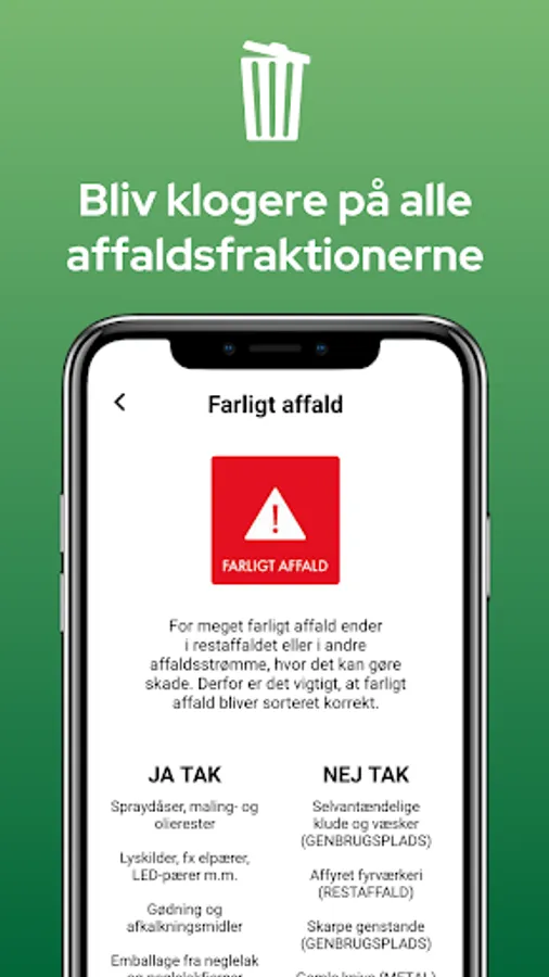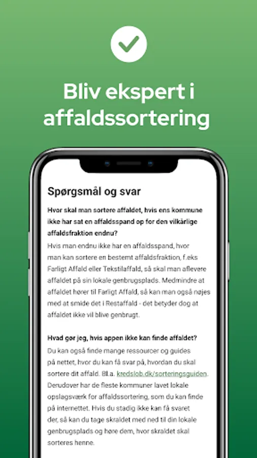 🇩🇰 Danish sustainability: The app is designed for the Danish sorting system and can be used in the entire country's municipalities. At the same time, the app is of course also Danish-owned and produced in Denmark.