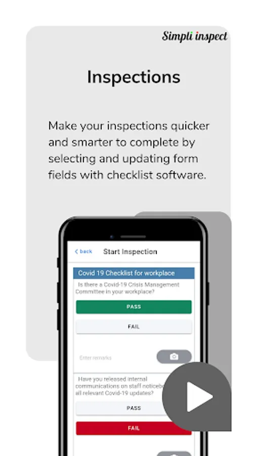 Simpli inspect is mobile friendly application that helps to digitize your field operations. Your team can build your own checklist from your paper templates or excel spreadsheets and conduct your inspection quicker and smarter. Simpi audit gives your team inspection data and areas of improvement, details about corrective actions and share reports.