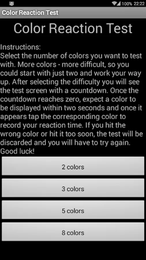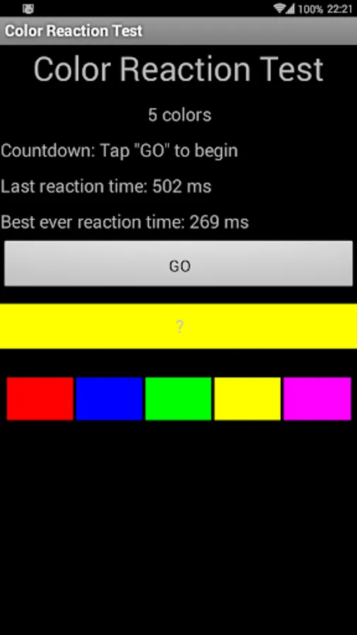 Medically approved reaction test to determine the ability of a person to respond to situations and be able to perform critical decisions. Also a fun game!