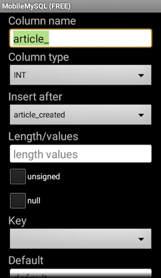 - Table structure: add/remove/edit columns, add/delete indexes