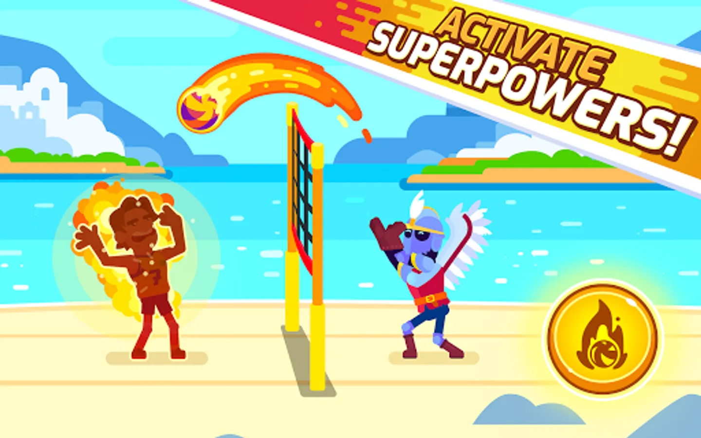Use special SUPERPOWERS – fireballs, double balls, even big solid rocks – knock off your opponent!