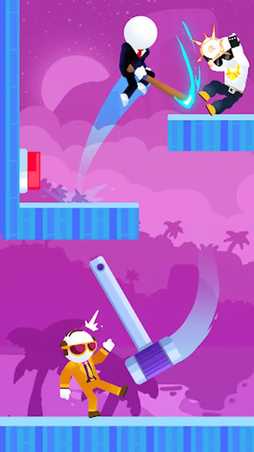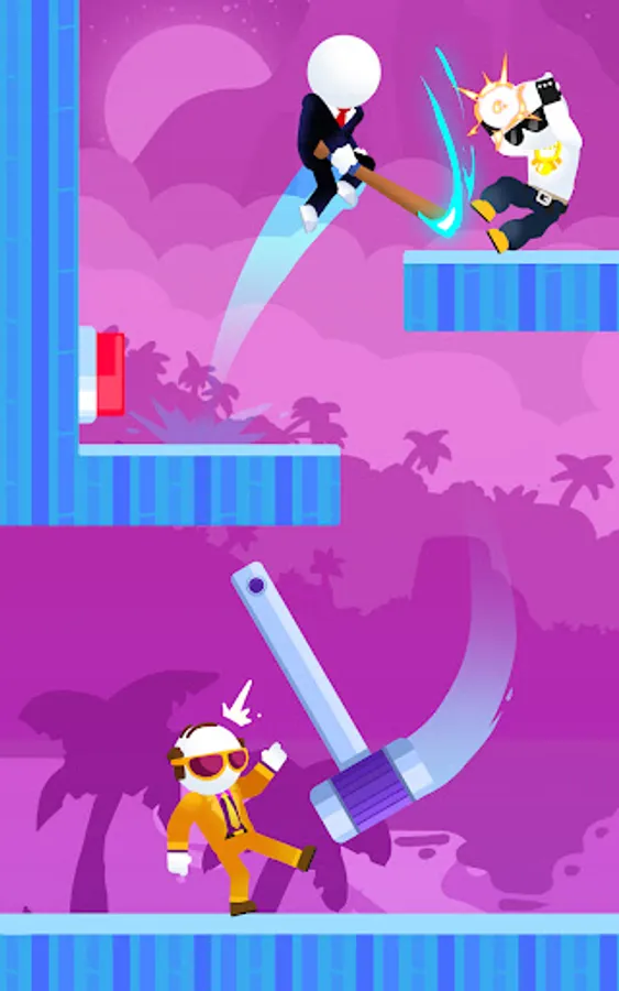 Stickman Slayer is a simple, platform arcade game in which we jump with a brave stickman armed with a baseball bat. Our goal is to surprise the enemies waiting for us and eliminate them. The task that we must complete is also to save the hostages kidnapped by a gang of demoralized Stickmen. You also have to be careful that none of the prisoners get accidentally hurt.