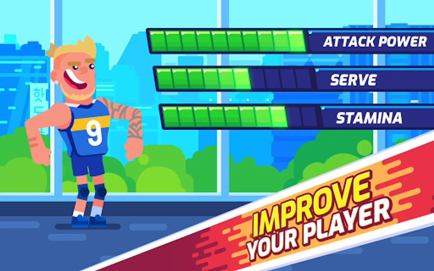 Develop your player's SKILLS – raise your stats across categories such as serve power and strength, stamina or attack!