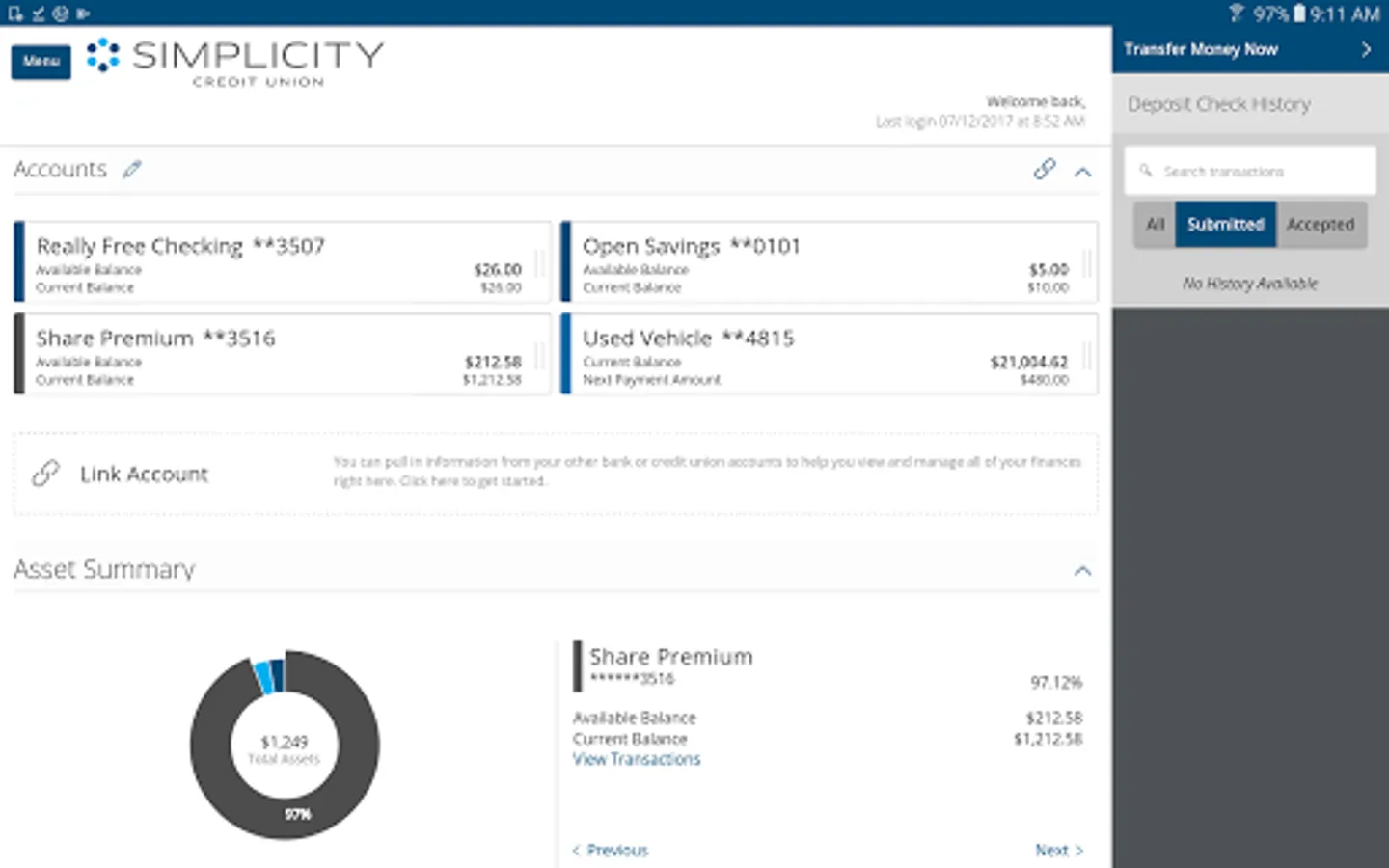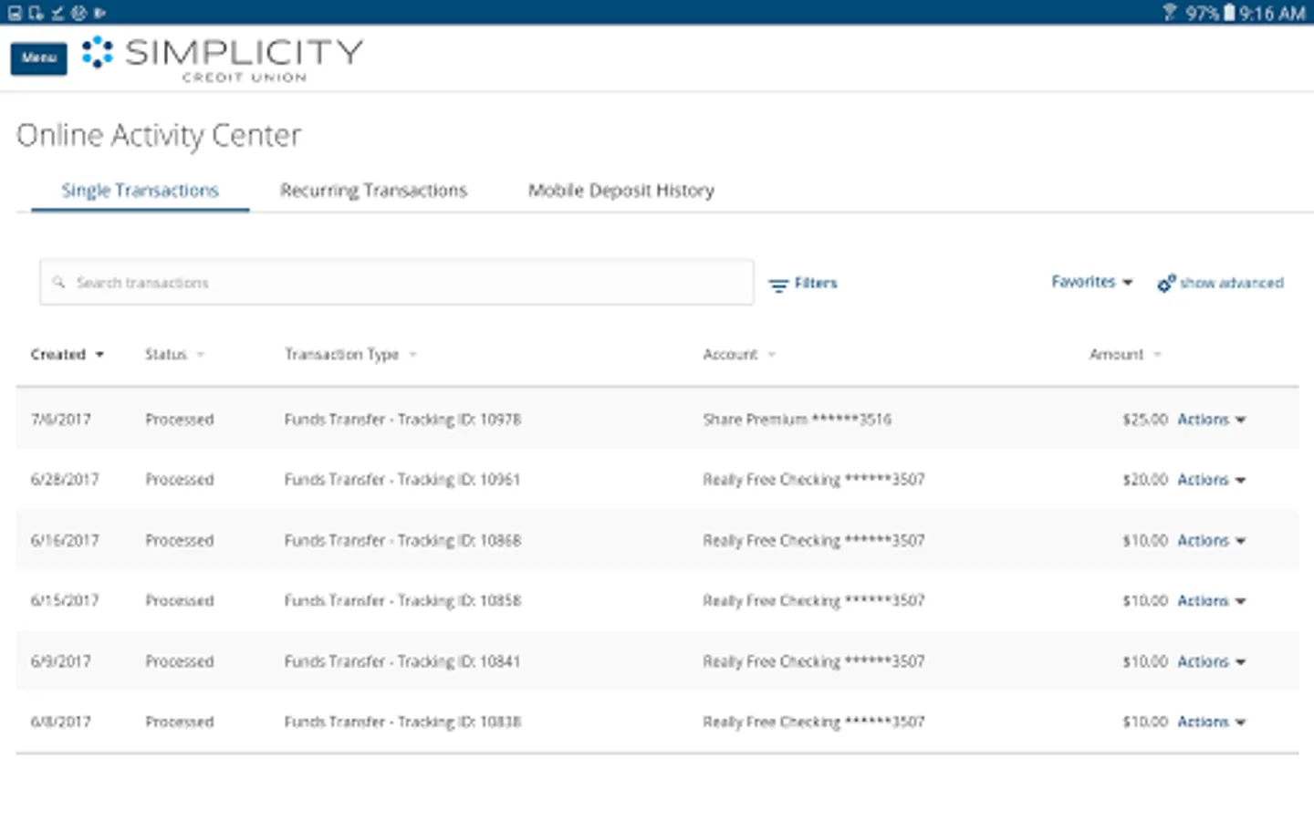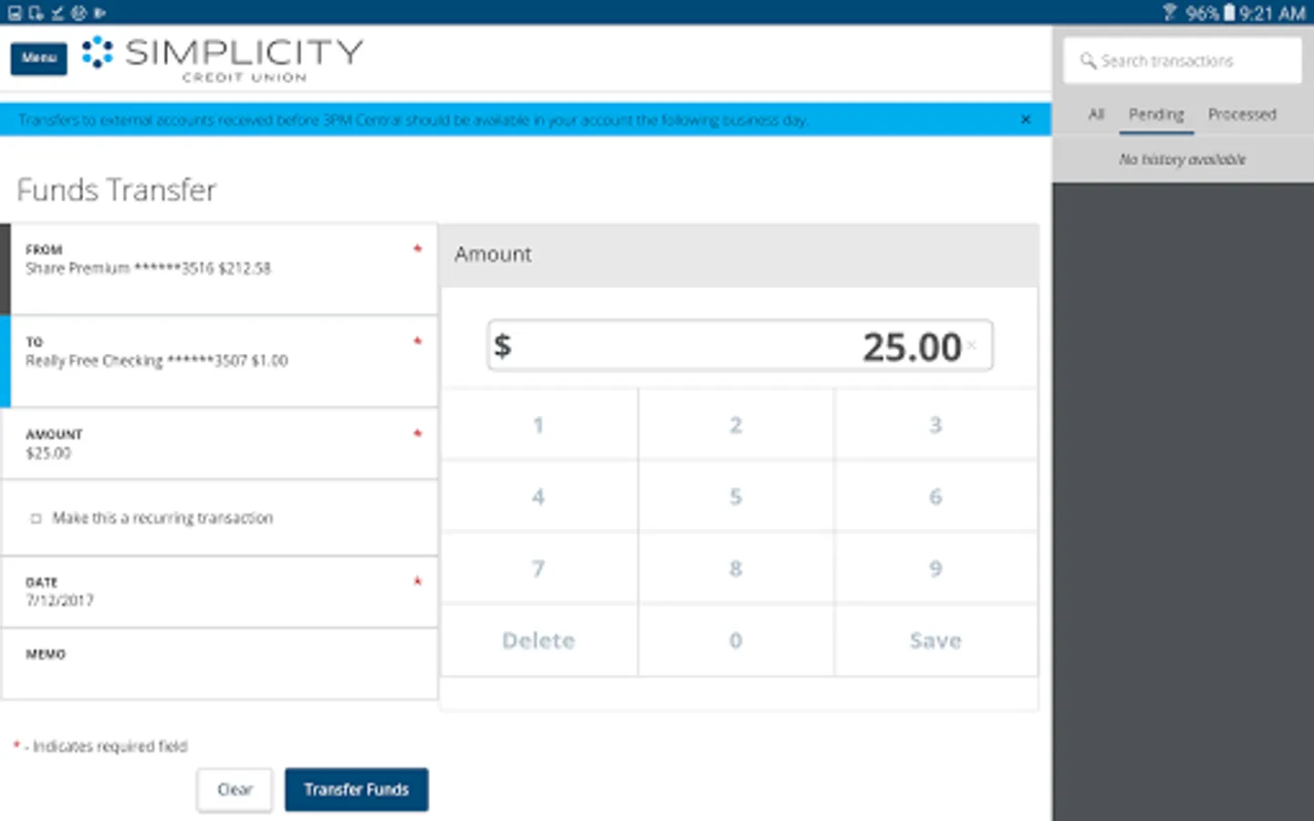 Take your favorite credit union with you wherever you go! With the mobile banking app from Simplicity Credit Union you can: transfer funds between accounts, pay bills, send money to other individuals, find ATM & Simplicity locations, check your current balances or transaction history (including business accounts), or contact us. It's fast, free and available to all of our online banking users.