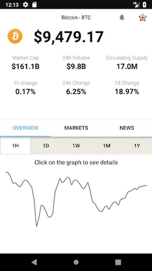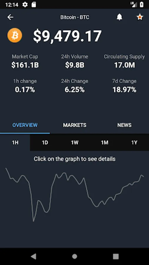 ✓ Detailed view of current cryptocurrency with live-charts.