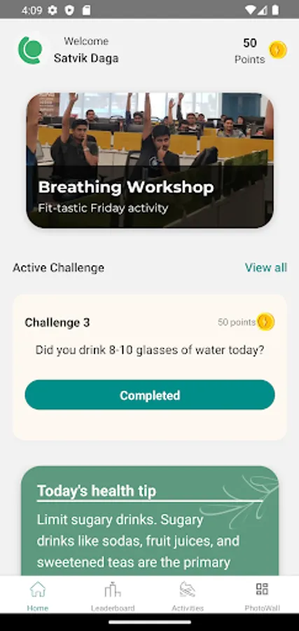 Completing health activities isn't just fulfilling, it's also rewarding! As you and your team successfully accomplish the challenges, you'll earn valuable points. These points not only showcase your achievements but also contribute to your team's journey toward victory.