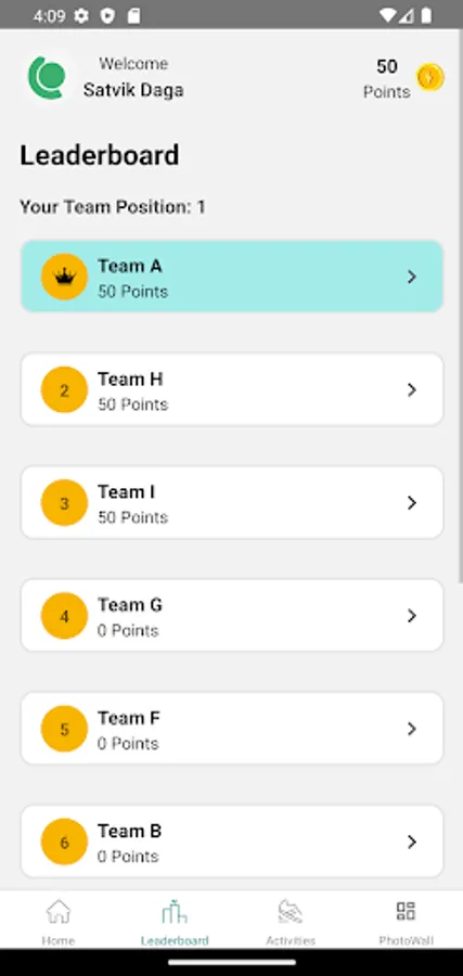 Stay motivated by checking the leaderboard to see how your team ranks! Each team's points add up, and the leaderboard showcases who's leading the pack. Will your team emerge as the front-runner?