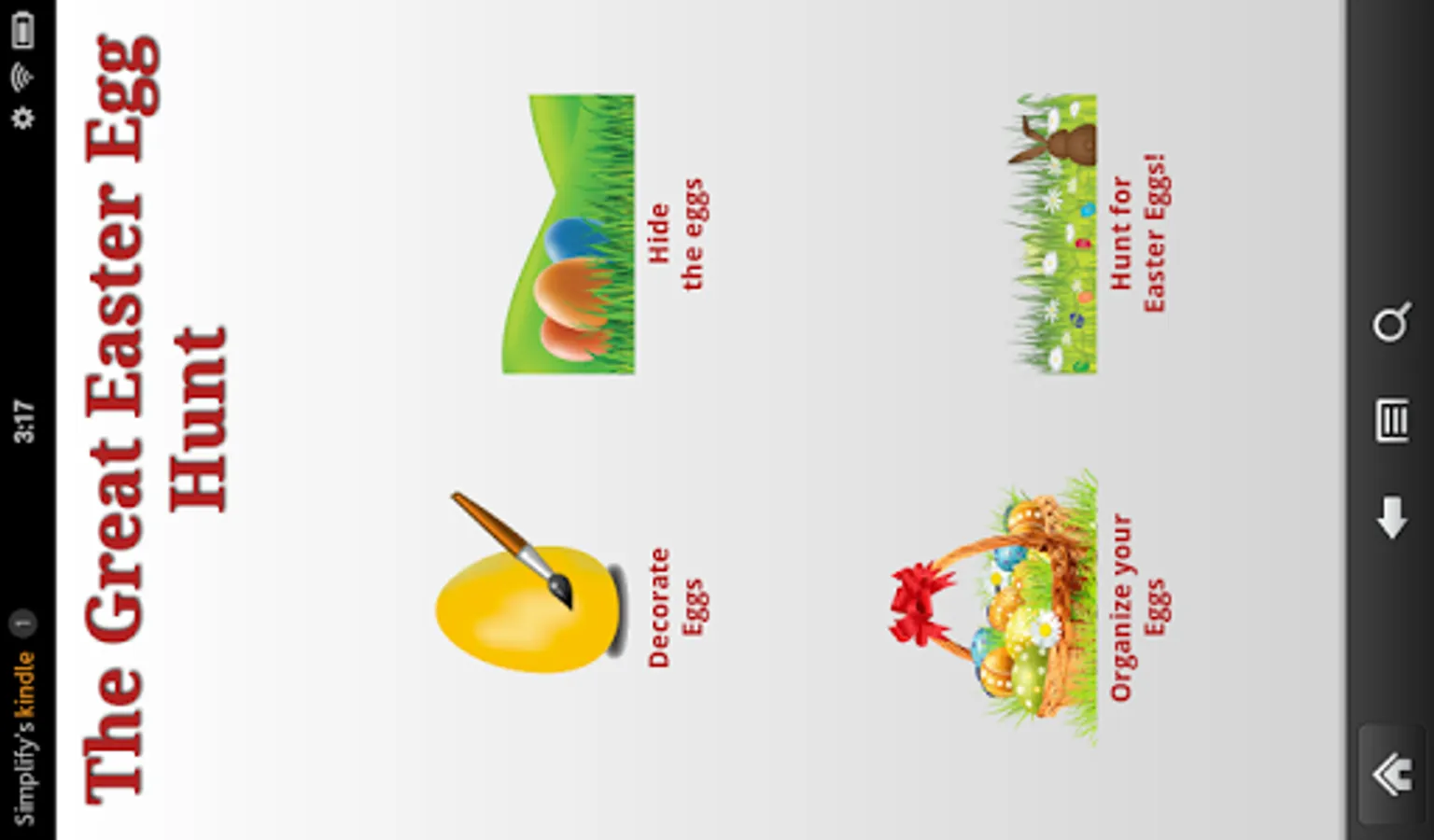 It's Easter, and time for The Great Easter Egg Hunt where you'll help Bob the Bunny find the hidden Easter Eggs! Let the eggs be automatically hidden, or create new hunts by hiding the eggs yourself. You can even save the hunts you create and let the kids find them later!