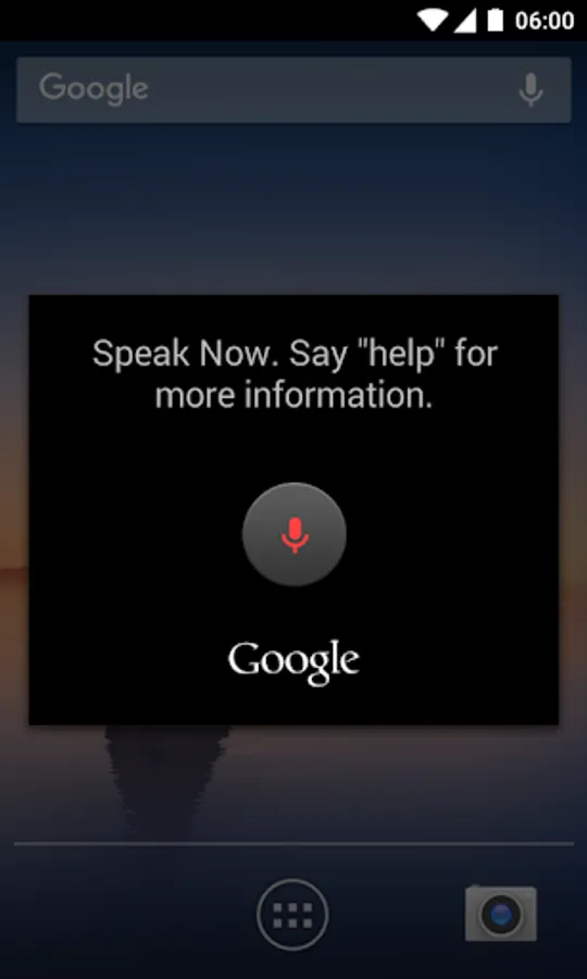 NOTE: VoiceNote has no main interface, other than the voice input dialog and the preferences screen. These keywords activate alternate functionality: help, preferences, settings, about.