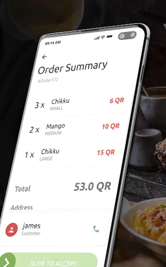 ItemView: This page can control full order and shows item list that customer has ordered, they can accept and start with location and calling.